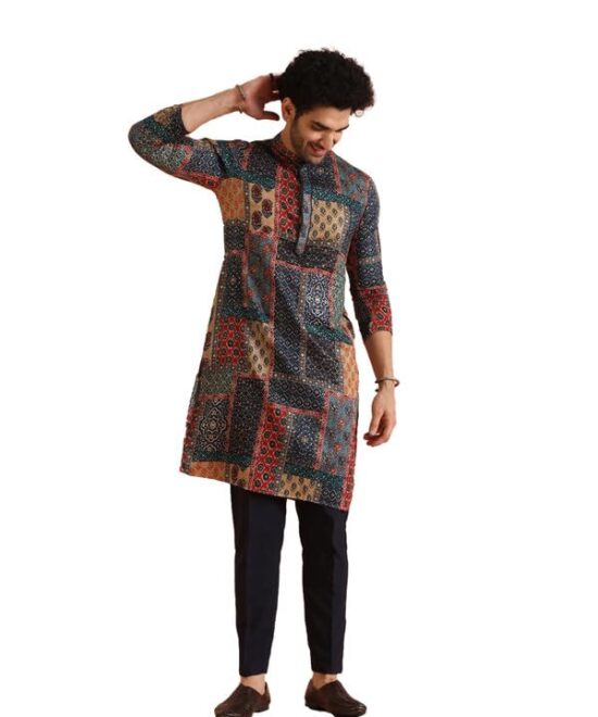KISAH Cotton Blend Kurta Trouser Set for Men | Mens Long Sleeve Kurta with Pant Set Mens Ethnic Collections-KA-0779-T306-40-Multi