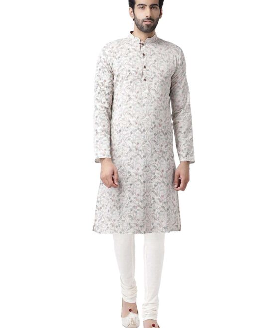 KISAH Mens Printed Cotton Blend Kurta – Traditional Ethnic Wear Kurta for Men for Weddings & Festivals, WhiteMulticolour, 42