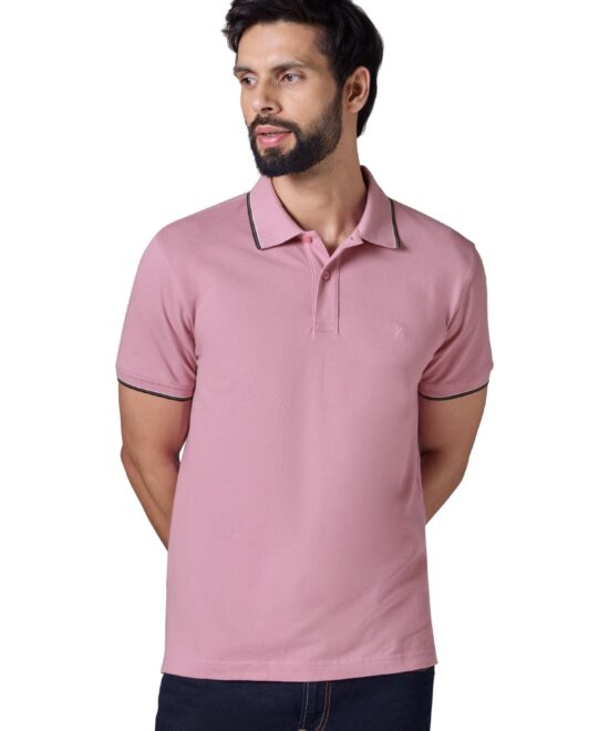 XYXX Accent Solid Halfsleeve Polo Tshirt for Men Blush Pink