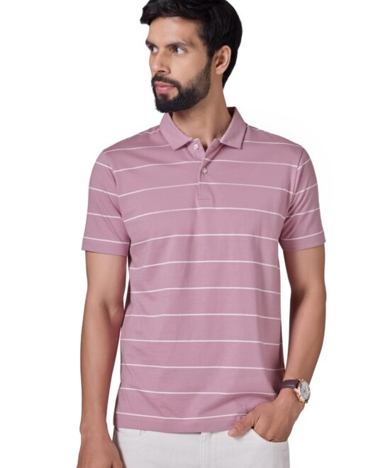 XYXX Linea Men’s Stripe Cotton T-Shirt | Polo Collor Tshirts | Half Sleeves | Stripe-Slim Fit | Dusty Pink