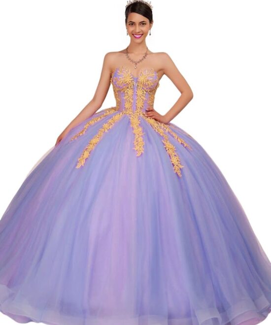petyoo Tulle Prom Dresses for Women Teens Long Ball Gown Lace Appliques Formal Evening Dress, Lilac, 4