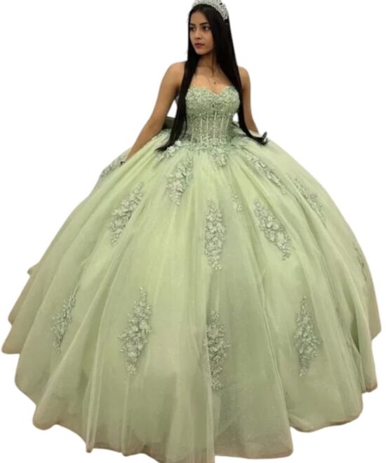 ThreadTexture Women’s Cinderella Christian Wedding Floor Length Ball Gown Light Green