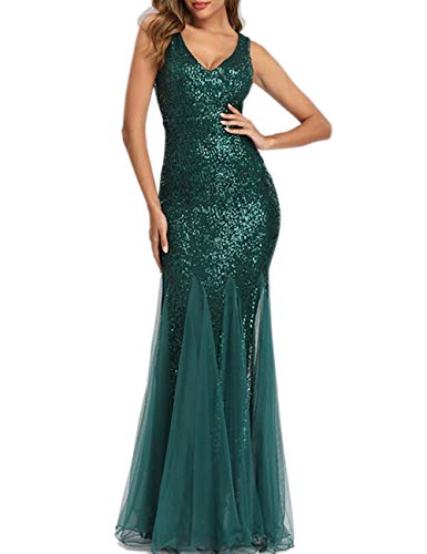 Ubervia Dresses – Womens Party Dress Sequins Tulle Sexy VNeck Long Dress Sleeveless Formal Evening Prom Gowns