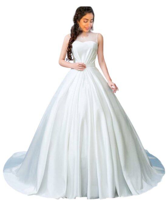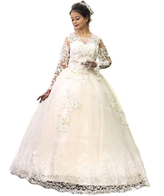 GOWNLINK Beautiful Full Stitched Christian Wedding Ball Gown Wedding Maxi Dress In White Color For Women-Gf038 With Sleeves