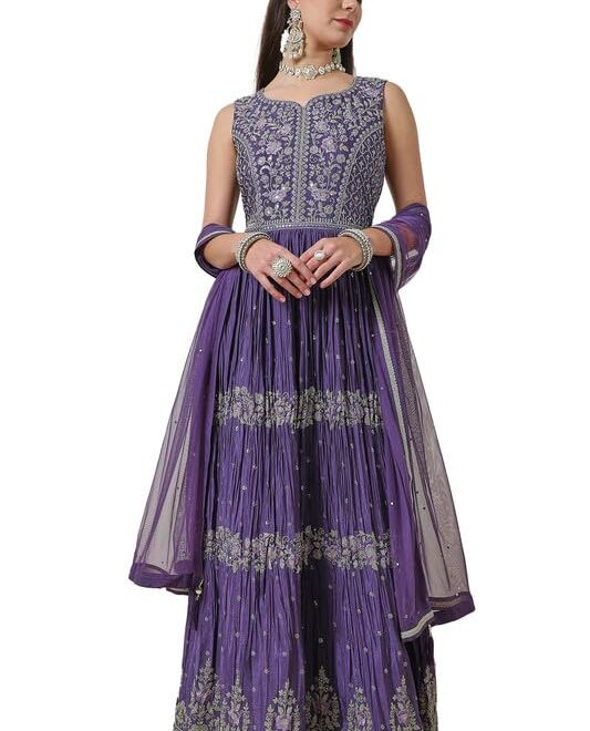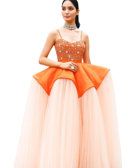 Orange & Peach Layered Net Gown for Women | Hand Embroidered Zari Tissue Bodice with Beads & Sequins | Corset Back Designer Indo Western Evening Dress (in, Alpha, 2XL, Regular)
