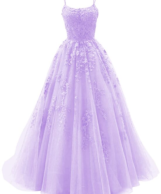 petyoo Tulle Prom Dresses for Women Teens Long Ball Gown Lace Appliques Formal Evening Dress, Lilac, 4