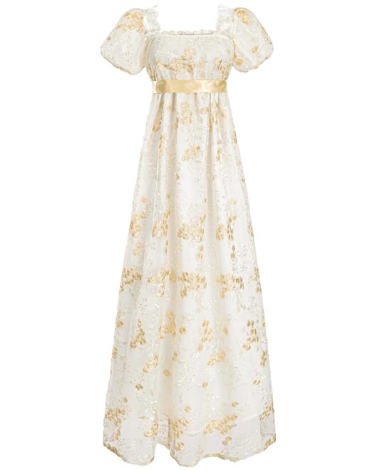 FCCAM Regency Dresses for Women Bridgerton Puffy Sleeves Empire Waist Regency Gown, Yellow, M