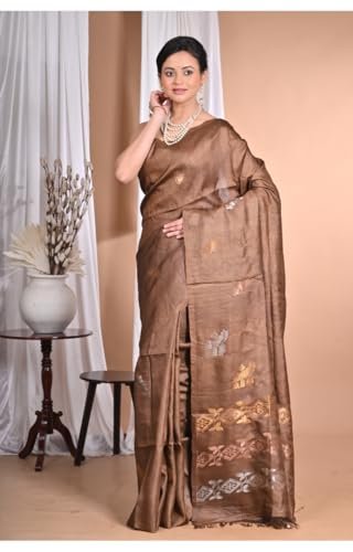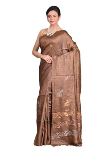 • Pure Tussar Silk: Handwoven with natural tussar silk, known for its golden sheen and rich texture.