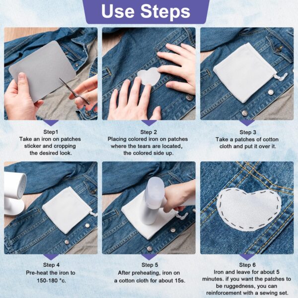 This package includes 10 iron-on patches in 29 shades, each measuring 3.7×4.9 inches. Ideal for repairing and customizing clothes, these versatile patches are a must-have for extending the life of your garments and adding personal flair.