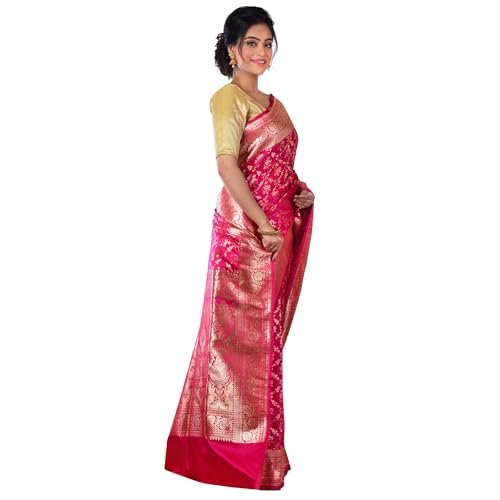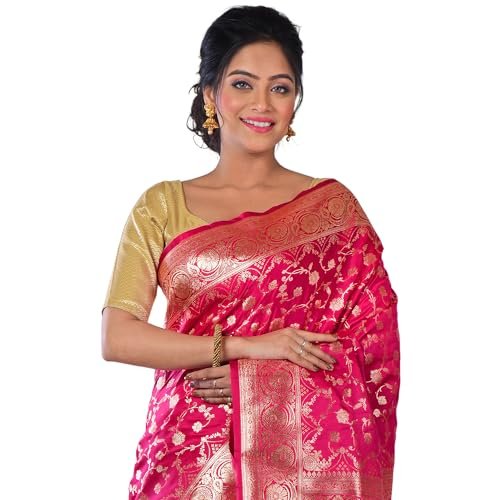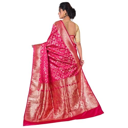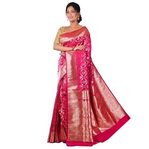 Product Name: Aishani Collection Woven Pure Katan Silk Banarasi Wedding Saree with Blouse Piece (Dark Pink & Gold)