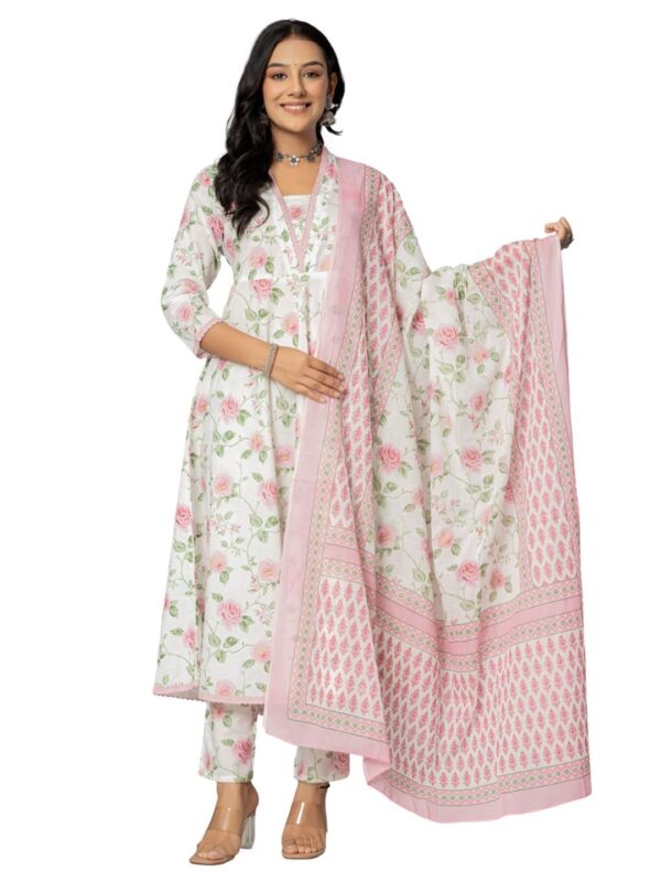 Product Name: Women’s Cotton Printed Anarkali Kurta with Palazzo Pants and Dupatta