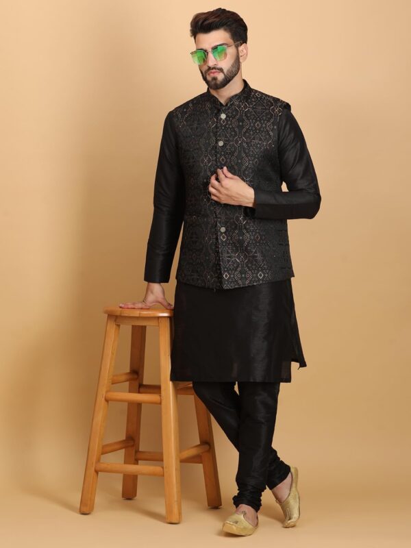 • Material: Silk Blend Kurta Set Jacquard Nehru Jacket