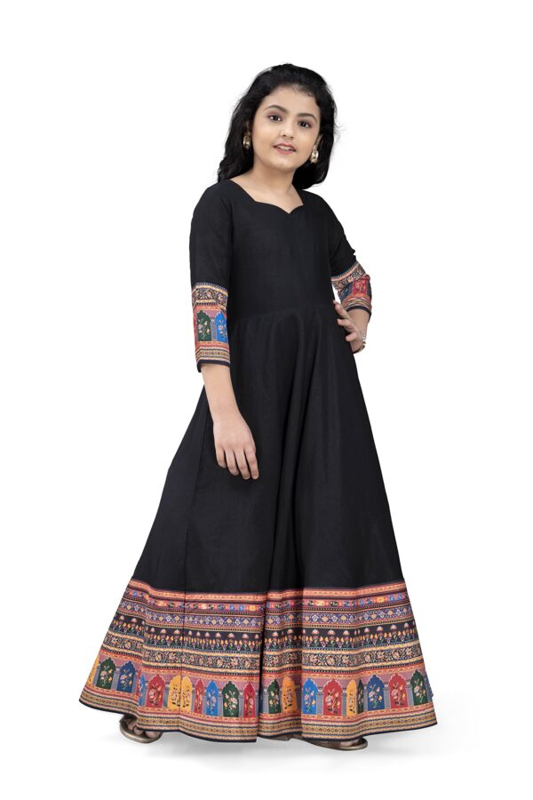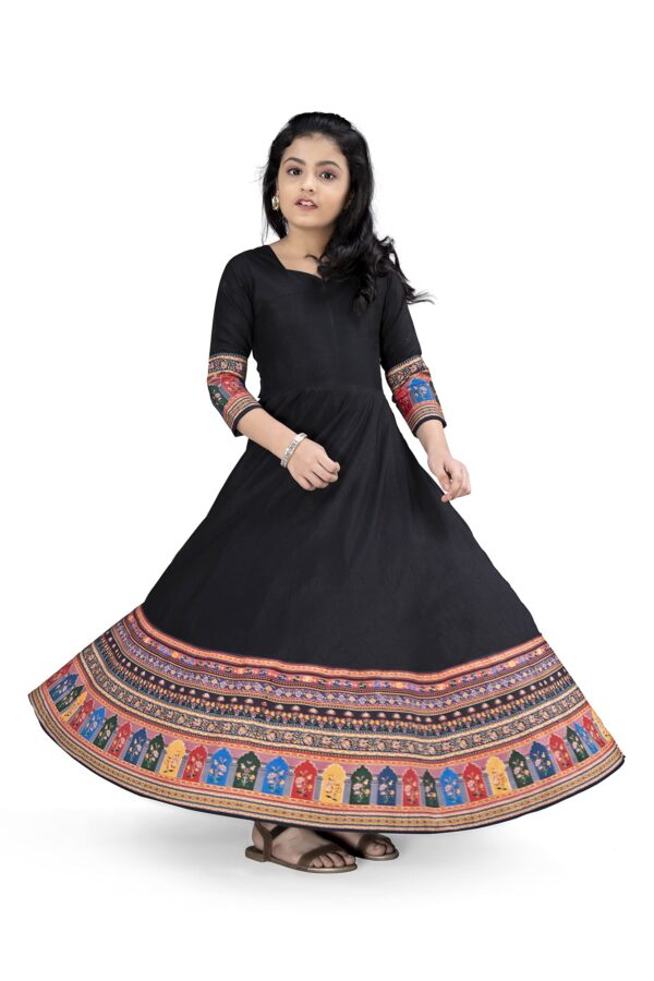 Fashion Dream Girls Crepe Silk Digital Printed Maxi Dress|Maxi Dress|Printed Dress|Long Dress|Ethnic Dress|Printed Maxi Dress(Black_7-8 Year)