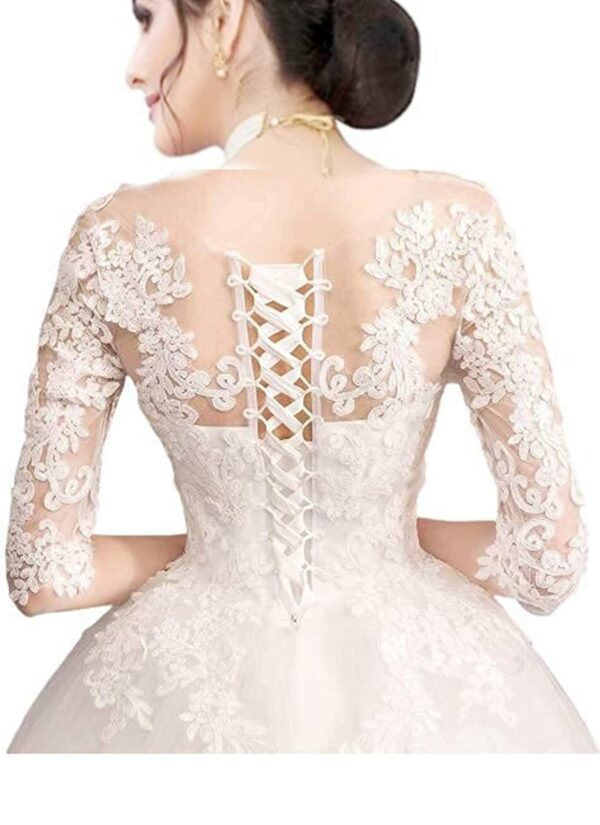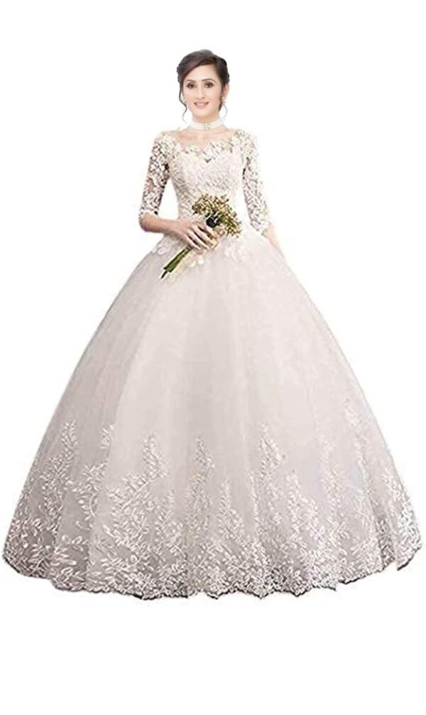 GOWNLINK White Christian Wedding Catholic Wedding Ball Long Gown Dress in White Frock Women with Extra Sleeves Gld30 (Small)