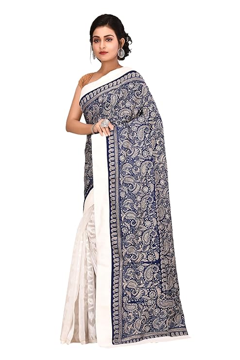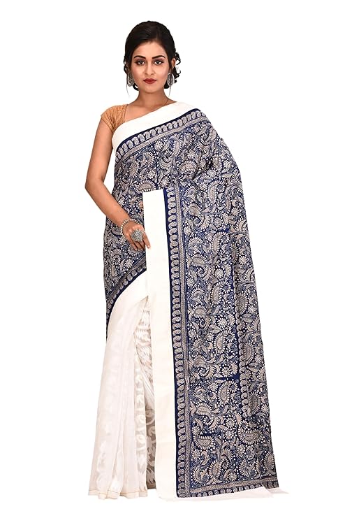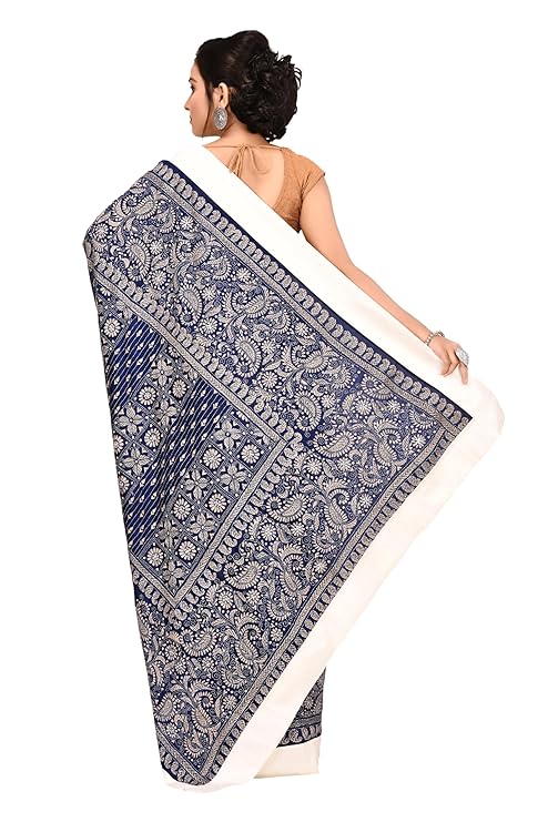 - DESIGN ELEMENTS: Stunning navy blue and pristine white colour combination with elaborate border work and traditional motifs