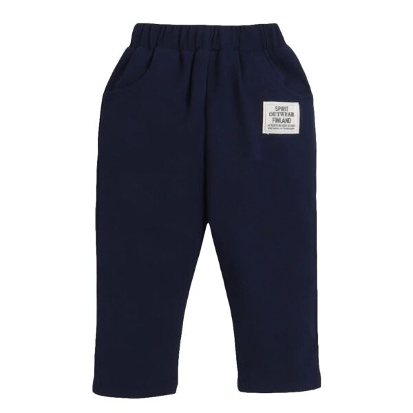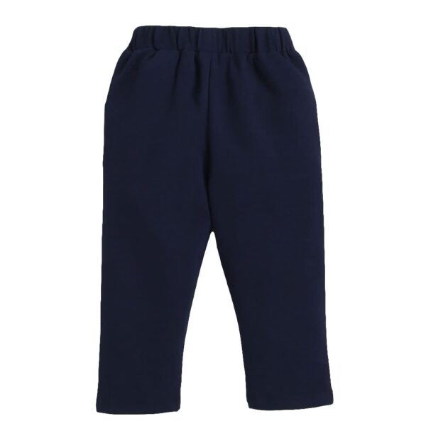 Coordinated navy pants with elastic or adjustable waist for easy fit