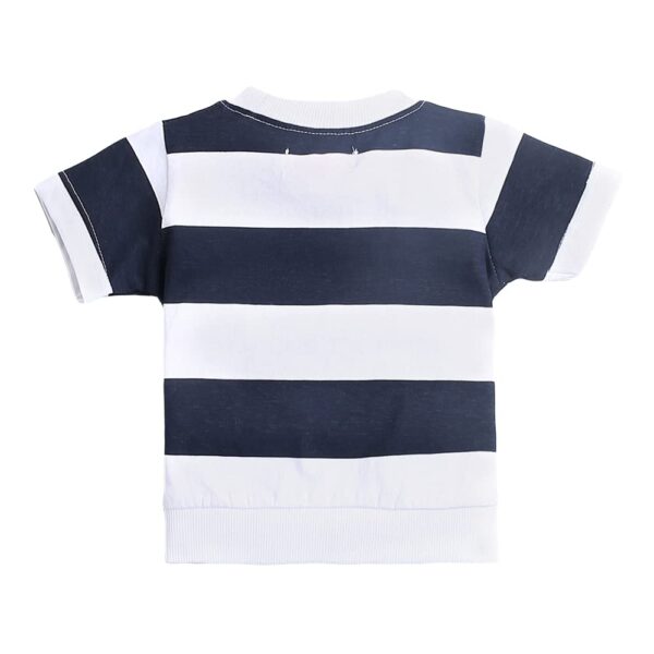 Hopscotch Cotton Boys Stripes Bear Printed Half Sleeves T-Shirt Joggers Set In Multi Color For Ages 9-12 Months