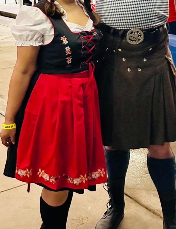 Color: Red with classic German-inspired embroidery and detailing.