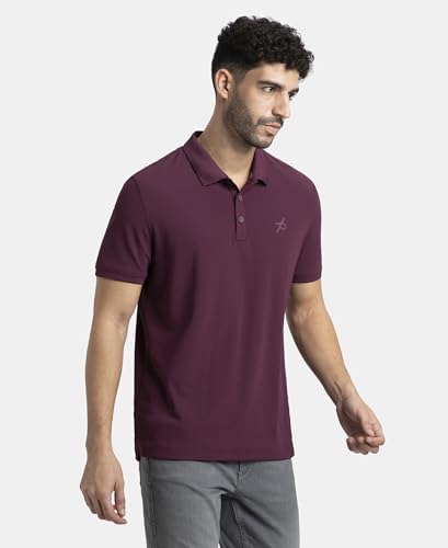 Jockey AM38 Mens Microfiber Fabric Solid Half Sleeve Polo T-Shirt_Wine_XL