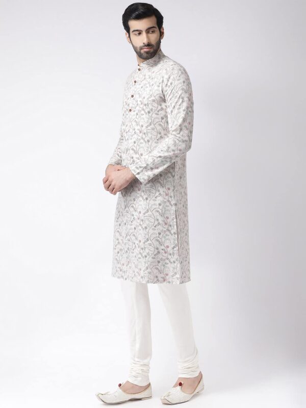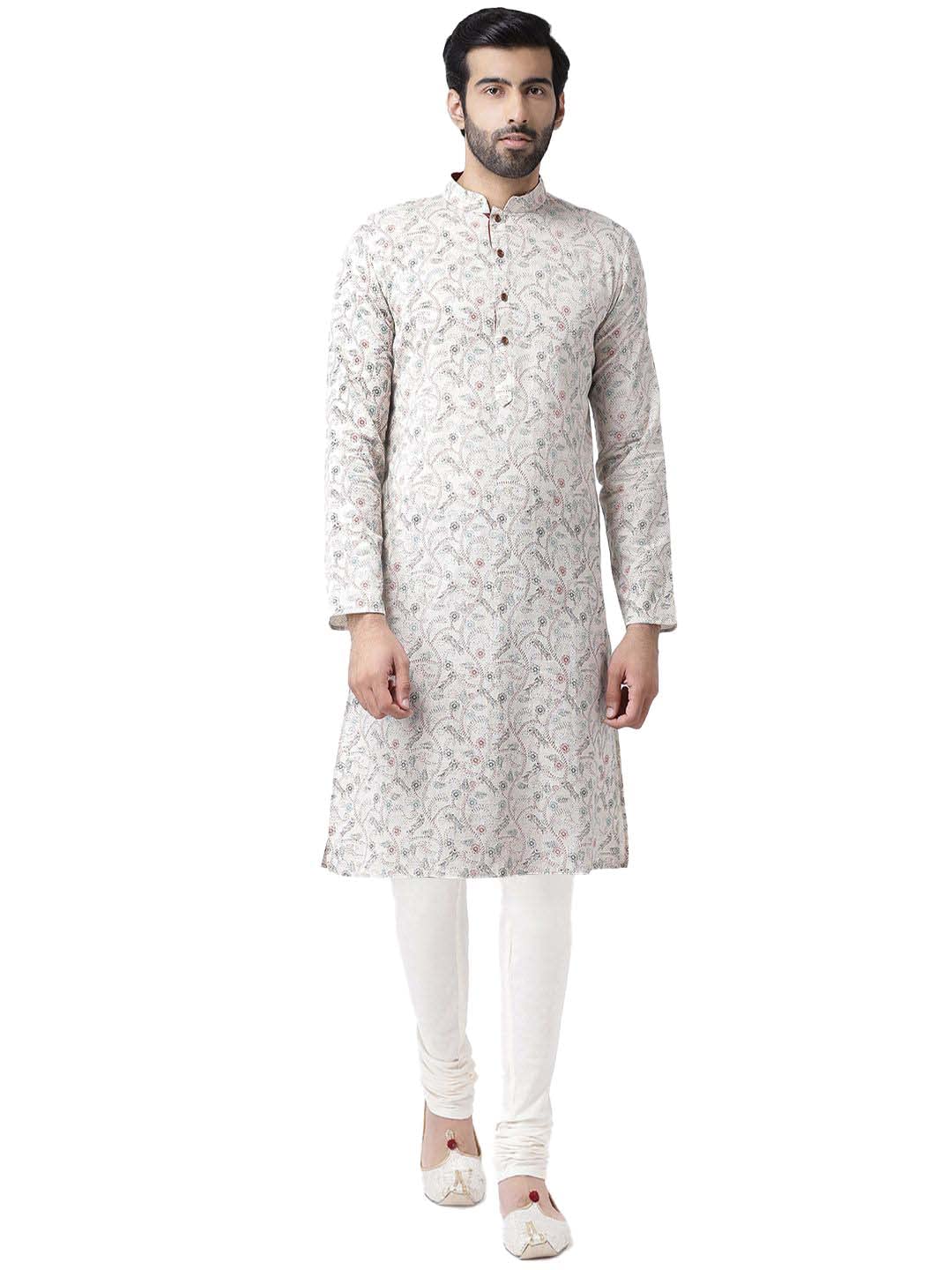 KISAH Mens Printed Cotton Blend Kurta – Traditional Ethnic Wear Kurta for Men for Weddings & Festivals, WhiteMulticolour, 42