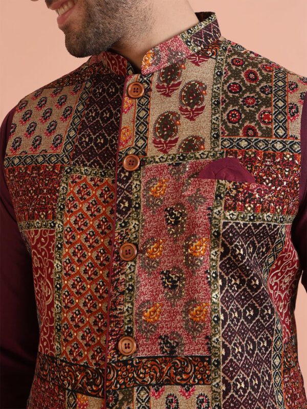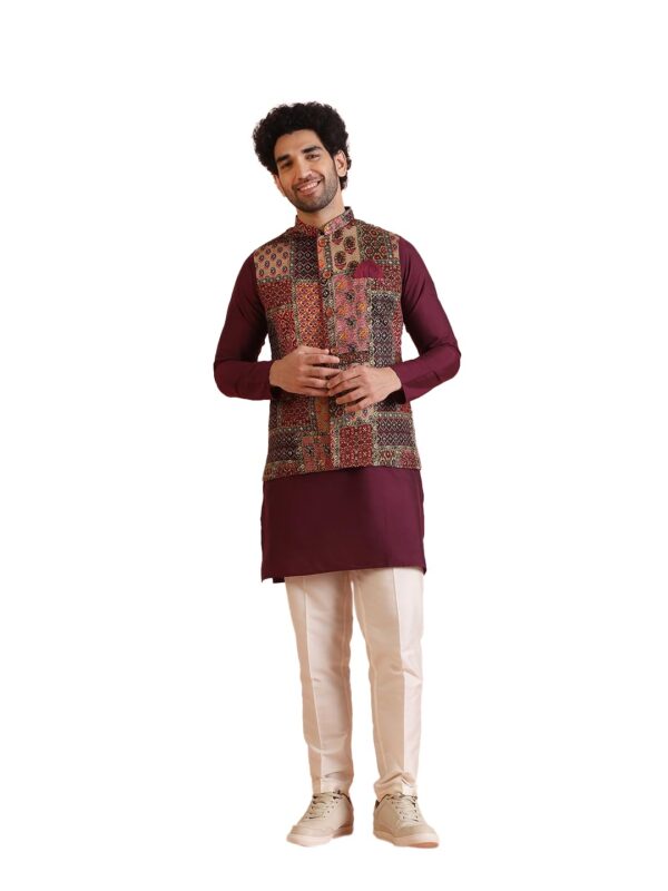 • ELEGANT FIT – Designed in a sleeveless style with a mandarin collar, this Printed Modi jacket gives a structured yet comfortable silhouette, perfect for ethnic, Indo-western, or office party looks.