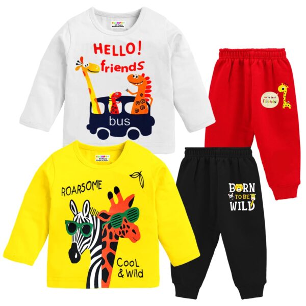 Product Name: Baby Boy Regular Fit Cotton T-Shirts & Pyjamas Set