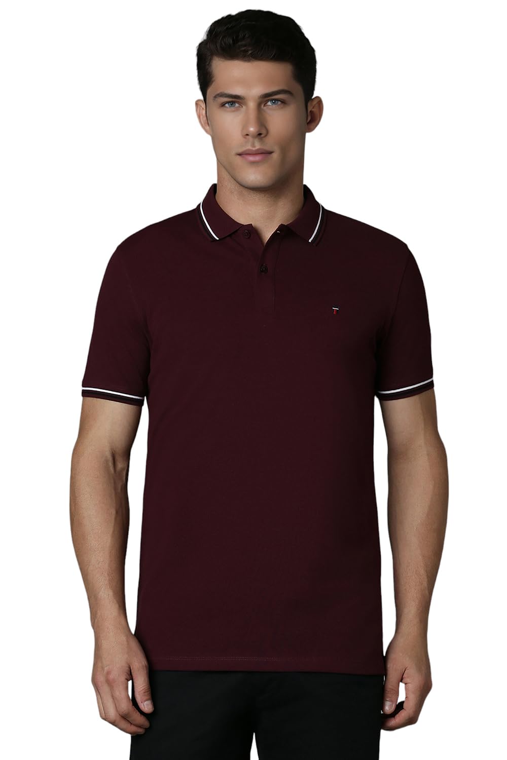 Louis Philippe Cotton Men’s Solid Slim Fit T-Shirt (LYKPCSLPL23765_Wine, XL