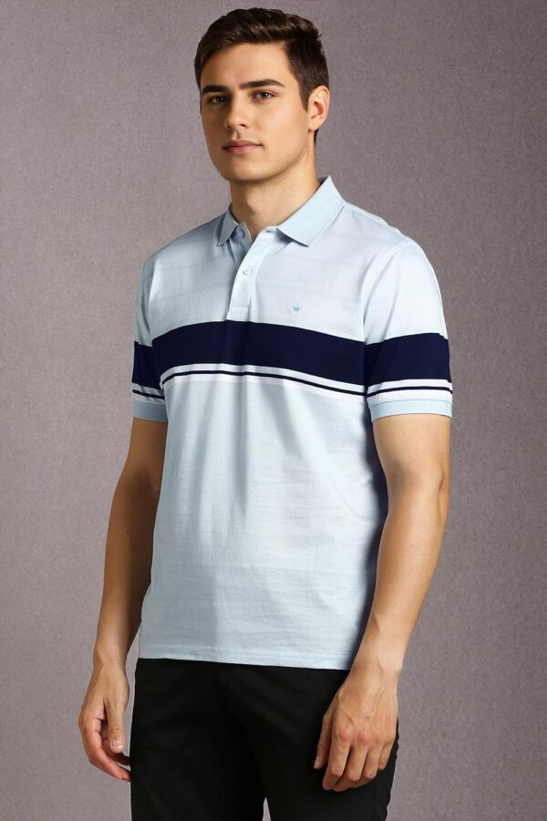 Make an effortless casual style statement with this Louis Philippe Polo T-shirt for Men. Crafted from premim cotton material, it assures maximum comfort for hours on the go. Perfect for any casual occasion, this t-shirt features a classic polo neck that adds a touch of sophistication to your ensemble. Grab yours today and elevate your wardrobe with this luxurious fashion statement.