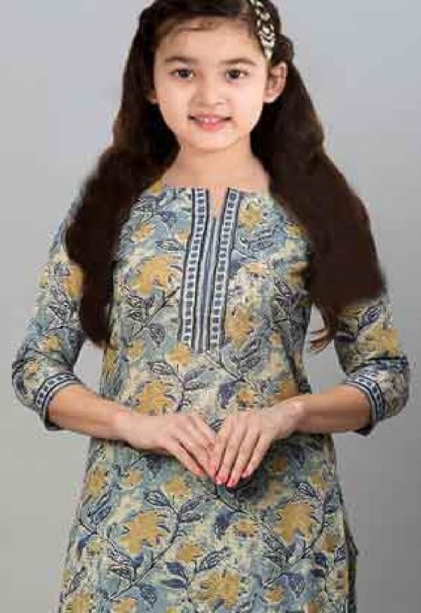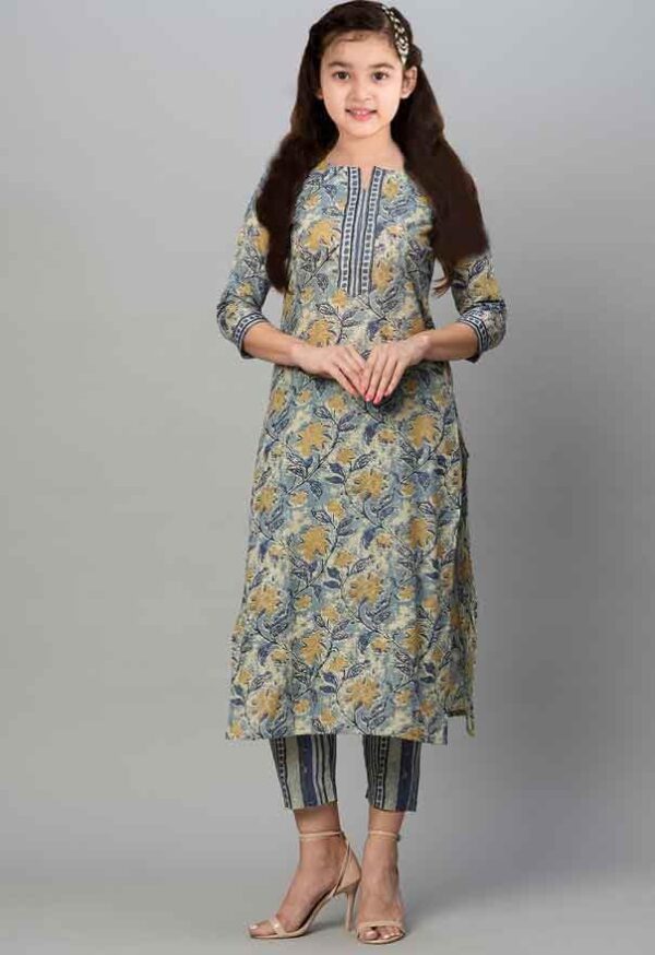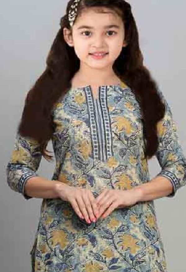 MIVASTRI girls kurti set | Girl’s Casual Dress | Printed Dress | Silk Blend Embroidered Straight Kurta Pant | Traditional clothing for girls | Kids’ ethnic wear (13-14 years, S-17-5-GREY)