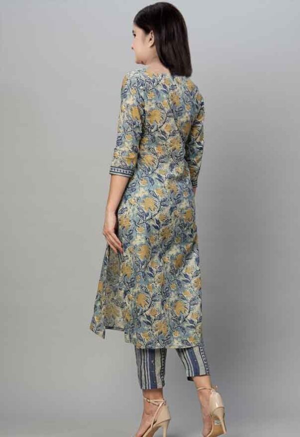 - Kurta Work- Embroidered, Pant Work- Striped, Dupatta Work- Printed Work Type- Floral