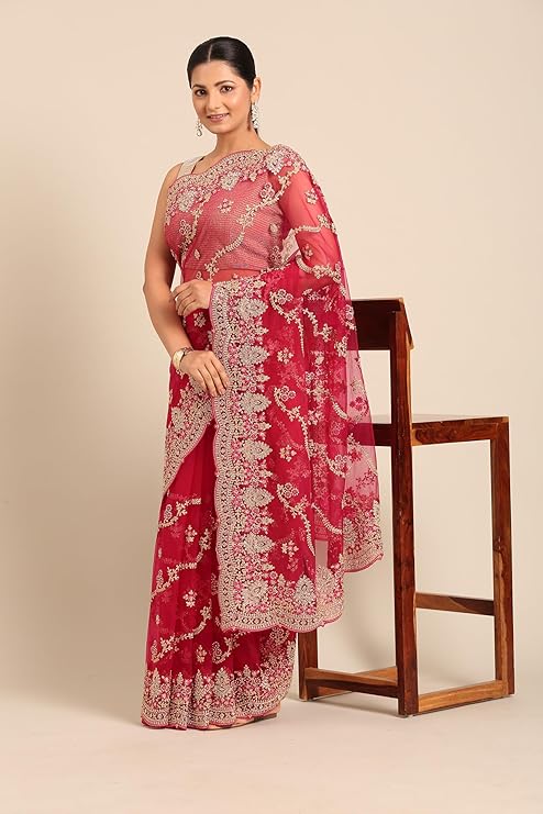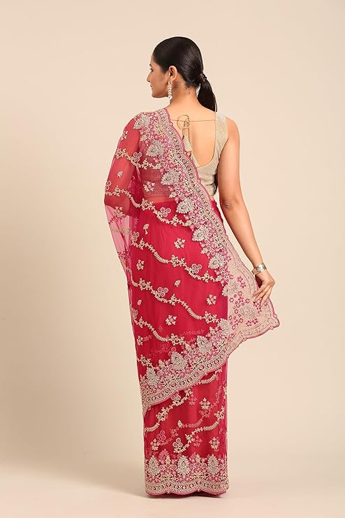 MOHEY Women’s Net Embroidered|Stone Work| Saree