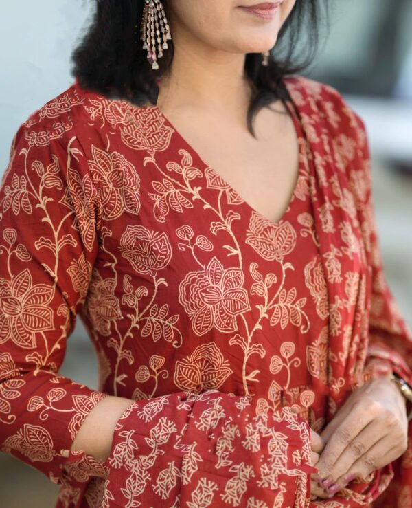• Product Material :- Viscose | Colour :- Red | Pattern :- Printed | Dupatta :- Chanderi Cotton |