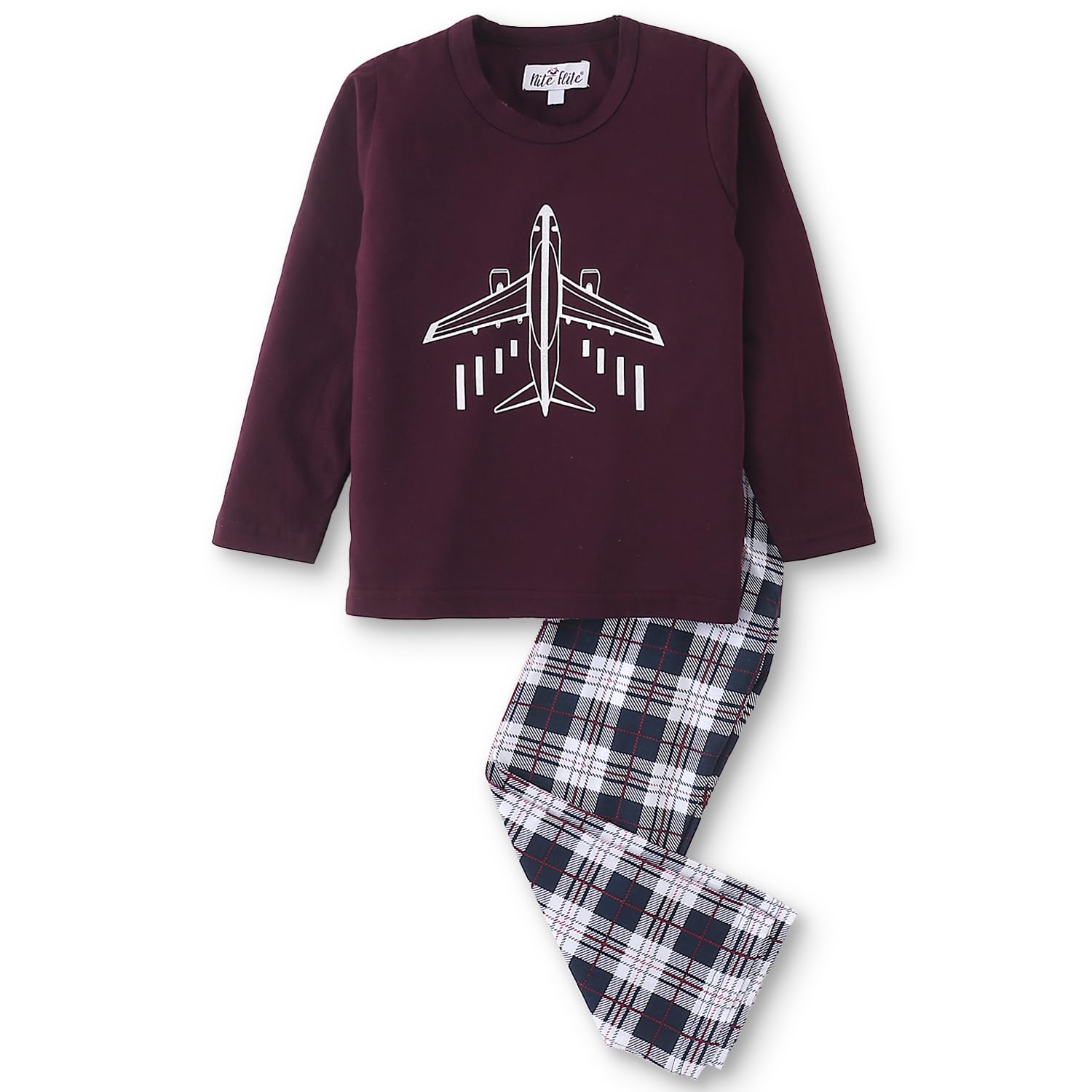 NITE FLITE Boys’ Airplane Printed 100% Cotton Nightwear Full Sleeve | Top and Pyjama Set (Multicolored,12)