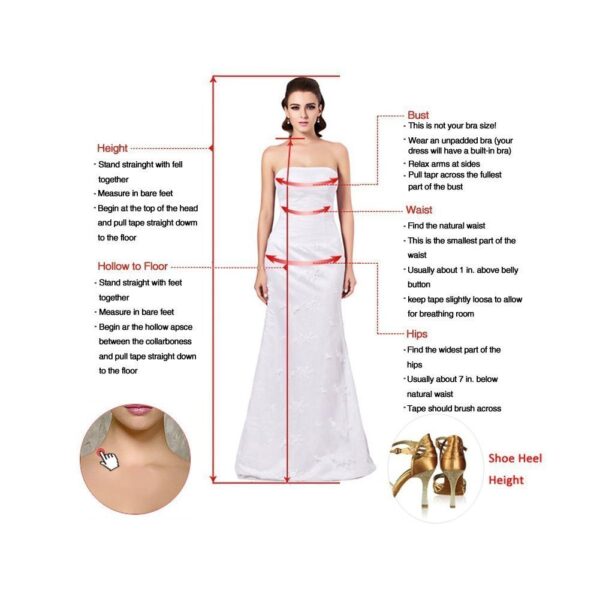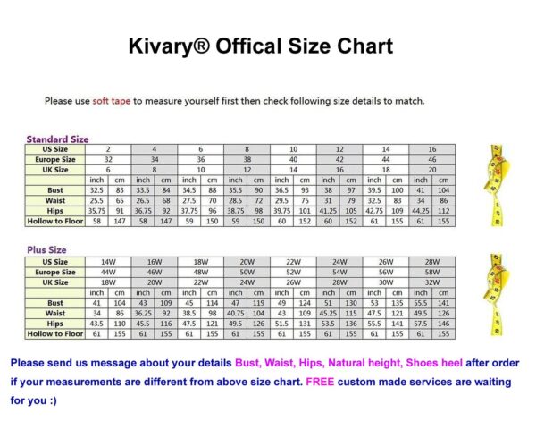 - This is a custom made dress even if standard size. Please find a soft tape to measure yourself and check size chart, keep tape loose, otherwise will be too tight or large for you