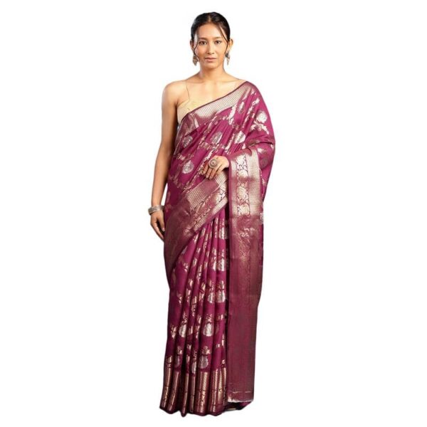 • Color & Look: Rich wine shade enhanced with intricate woven patterns, ideal for formal and festive occasions.
