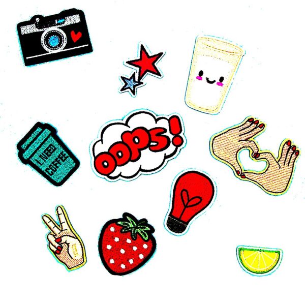 Segolike 10 Pieces DIY Embroidered Sew Iron on Patches Gesture Star Camera Strawberry Applique Decorations