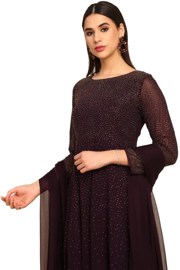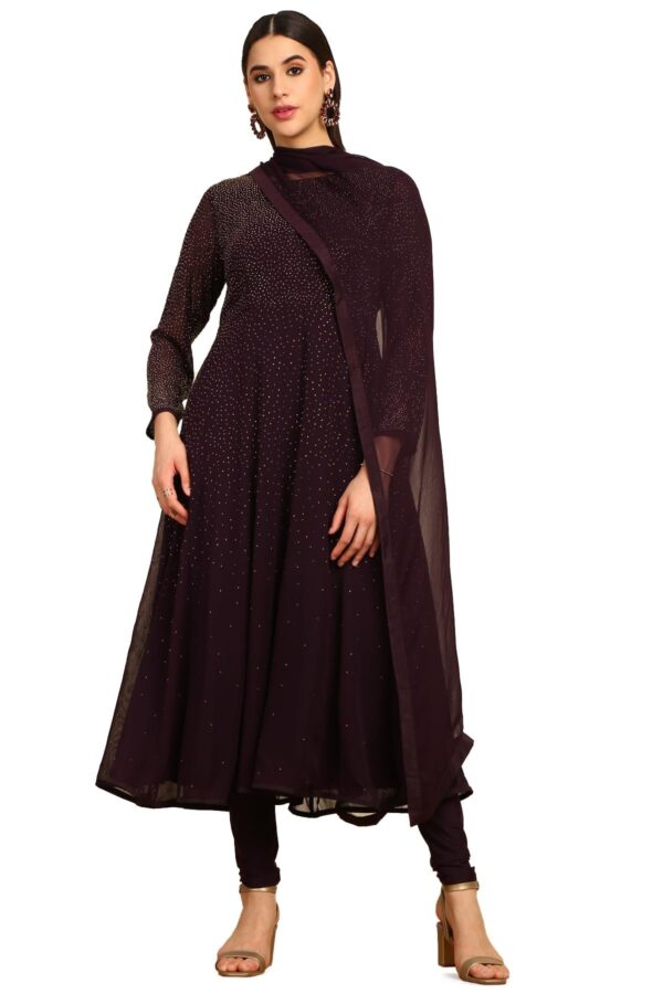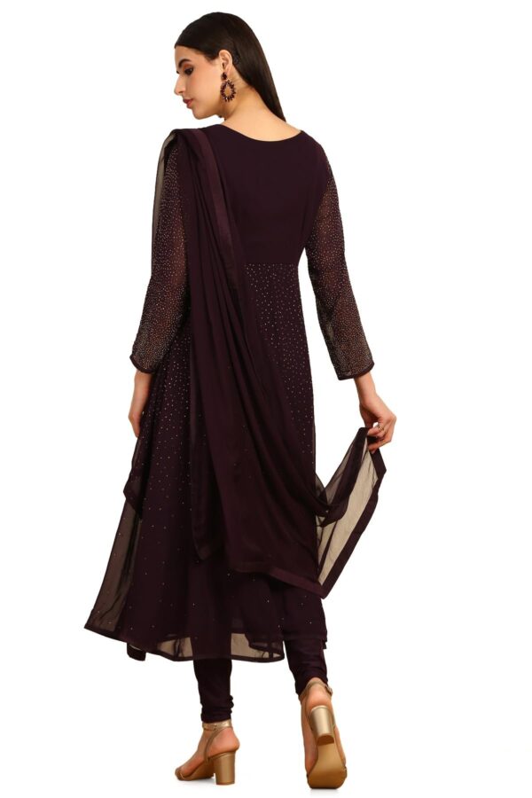 Product Name: Soch Women’s Purple Pure Georgette Embroidered Churidar Set