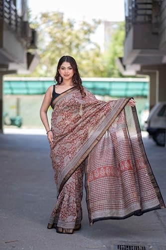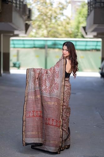 THE RAKSHA STORE Saanvika Red Maheshwari Silk Saree for Women – Handcrafted Bagru Print Traditional Indian Ethnic Saree for Wedding, Festival, Party, Ceremony, Gift