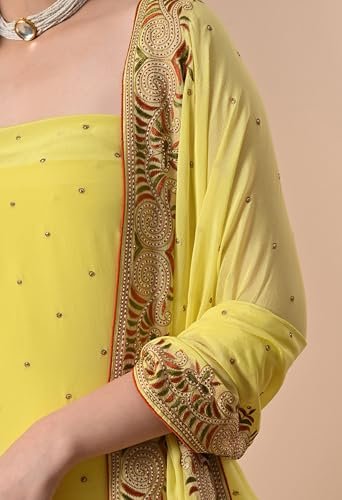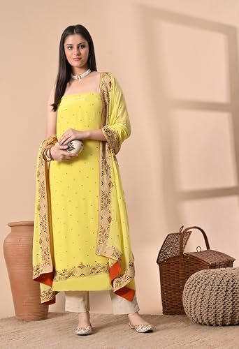 The THE WEAVERS SHOP BY RAAVI Crepe Suits Set Unstitched Dress Material offers a smooth, elegant drape with the flexibility to design your outfit the way you want. Made from high-quality crepe, this fabric set is ideal for festive occasions, parties, or everyday elegance.