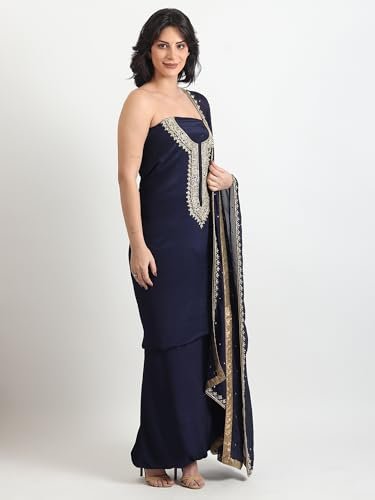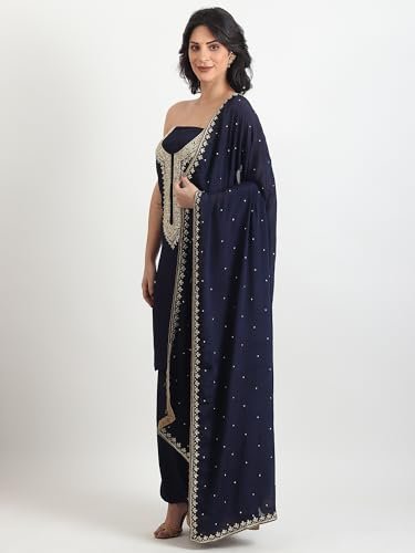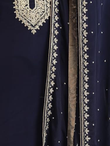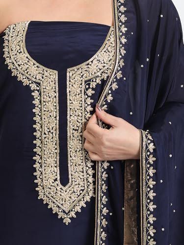 The THE WEAVERS SHOP BY RAAVI Crepe Zardozi Work Unstitched Dress Material – Set of 3 brings together luxurious fabric and exquisite craftsmanship. Made with premium crepe and adorned with intricate Zardozi embroidery, this set offers a regal look perfect for weddings, festive occasions, and formal gatherings.