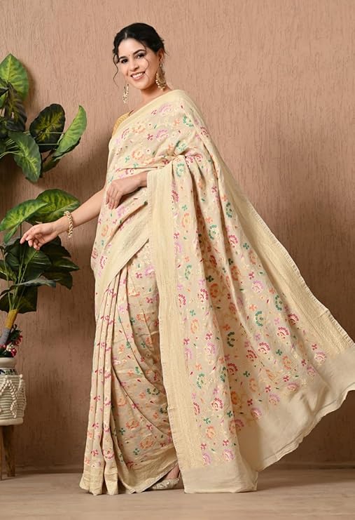 Traditional Tilphi work adding intricate detailing to the saree