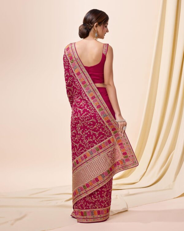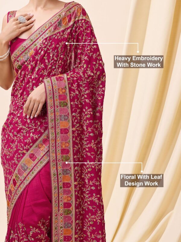 Product Name: TRENDMALLS Women’s Vichitra Silk Embroidery & Siroski Stone Work Saree with Unstitched Blouse Piece (K1085, Pink)