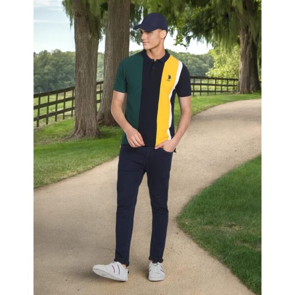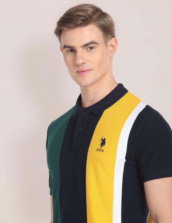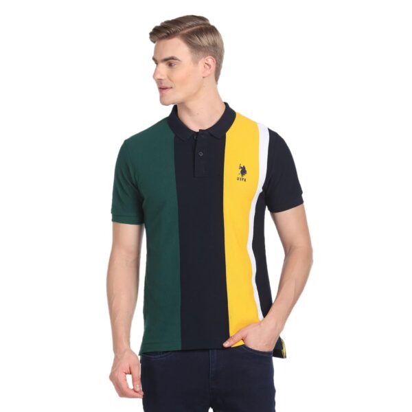 U.S. POLO ASSN. Men’s Colour Block Pure Cotton Slim Fit Polo Shirt (USTSHS1611_Navy_L)
