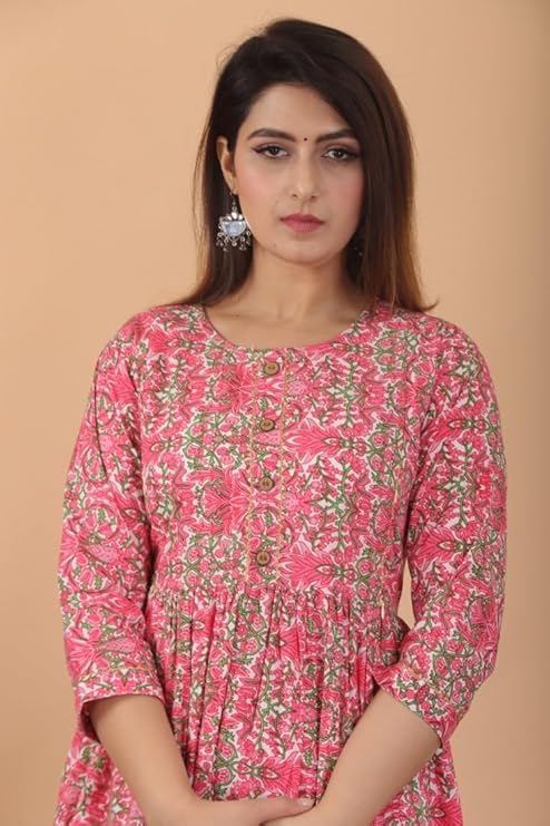 Product Name: Pure Cotton Printed Maternity Feeding Kurti with Both-Side Invisible Vertical Zippers