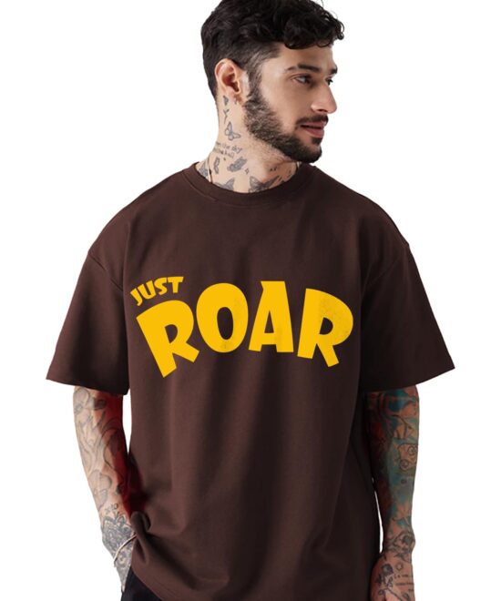 LEOTUDE Men’s Cottonblend Oversized Half Sleeve Round Neck Tshirt (Fs_49Roar_P_Brown_L, Shirt)